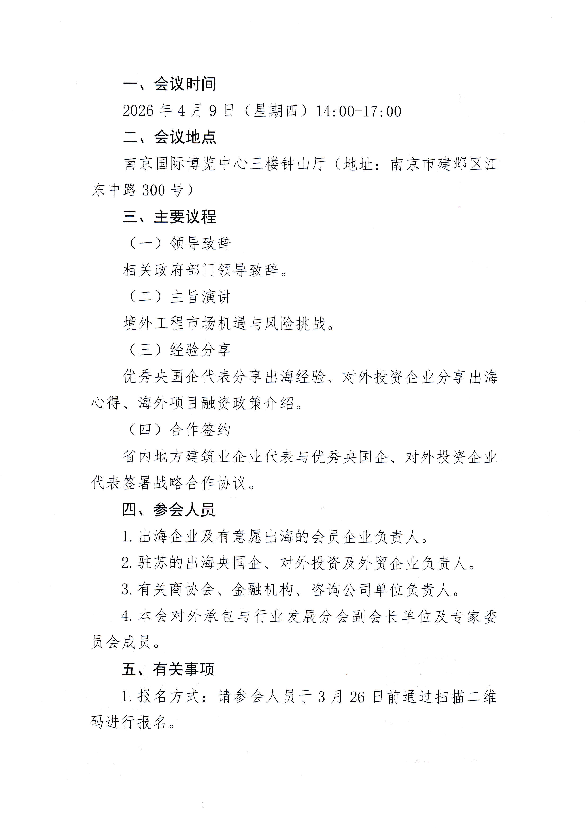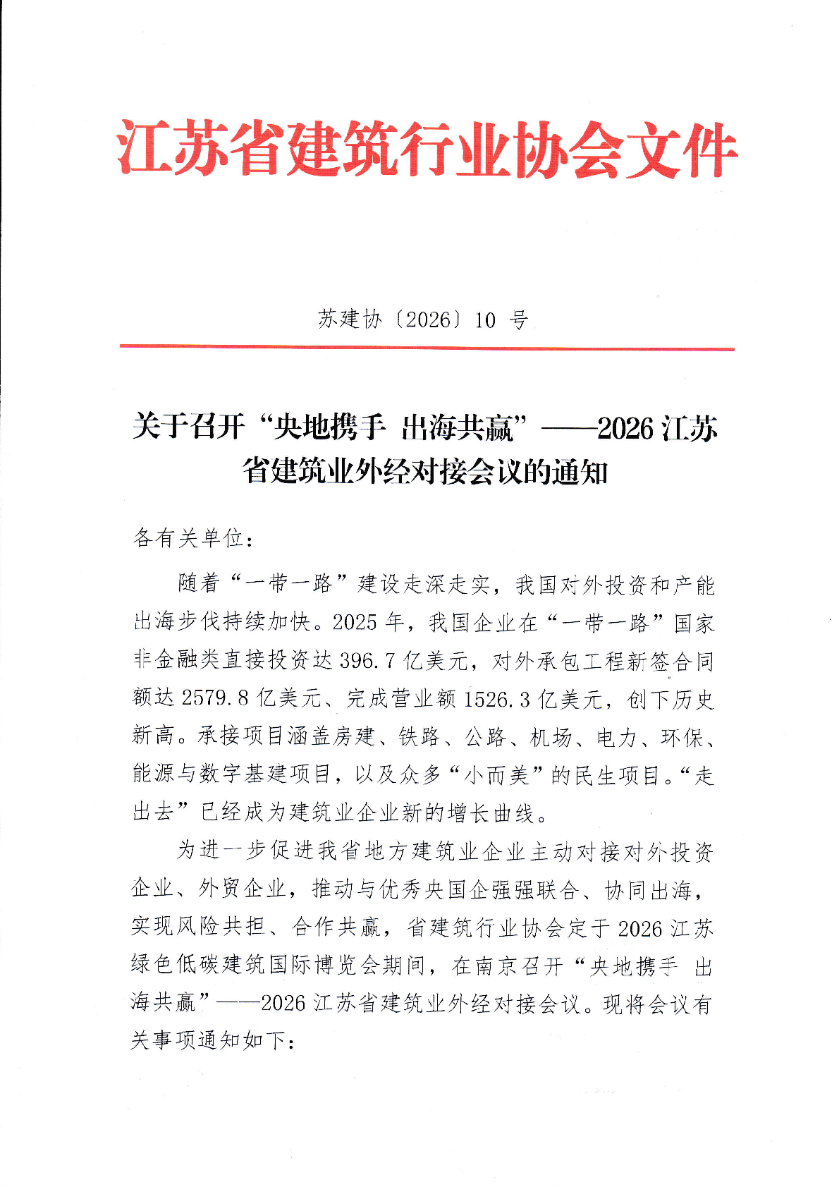 江苏省建筑行业协会召开2026江苏省建筑业外经对接会议的通知