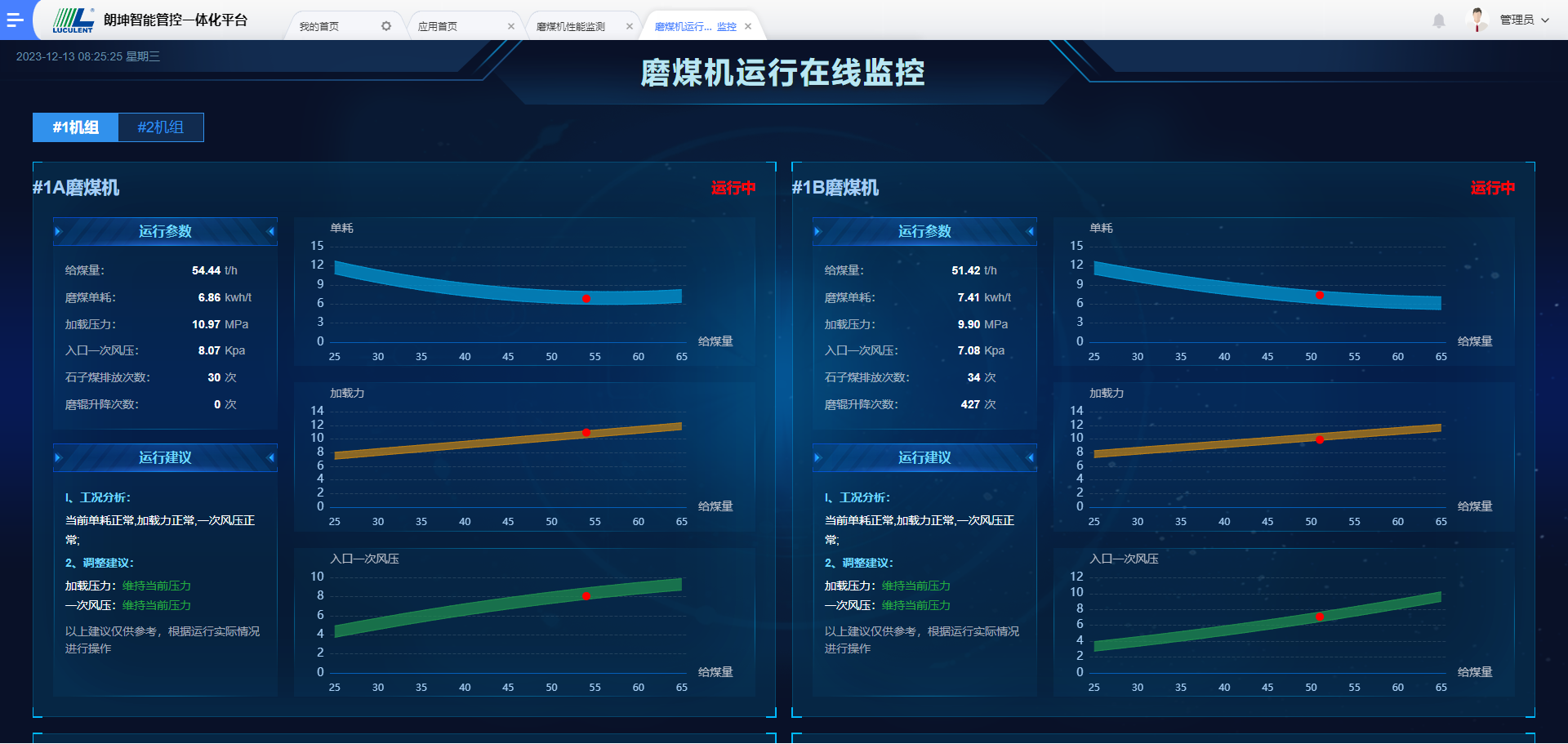在经济运行方面,平台可挖掘出磨煤机单耗、加载压力、入口一次风压等性能参数的正常范围,实现对磨煤机非经济工况的可视化展示、分析与调优建议;