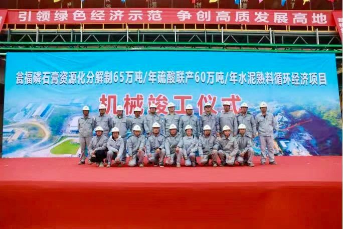 该项目生产磷石膏140万吨/年,分解制硫酸65万吨/年,联产水泥80万吨/年。项目的建设,离不开承包方和鹏飞集团的紧密联系、团结协作。鹏飞集团将在接下来的时间里,精心调试,把好每个节点,做好后续装置的跟踪维护,助力全系统早日实现达产达标。