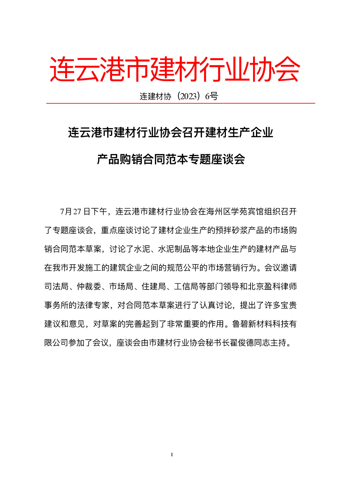 连云港市建材行业协会召开建材生产企业产品购销合同范本专题座谈会