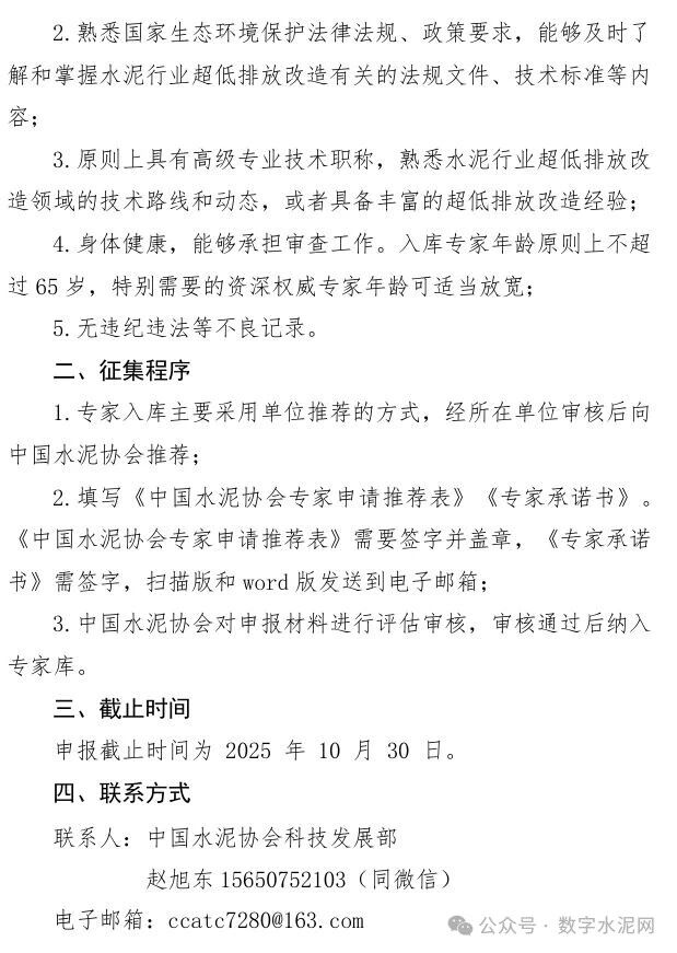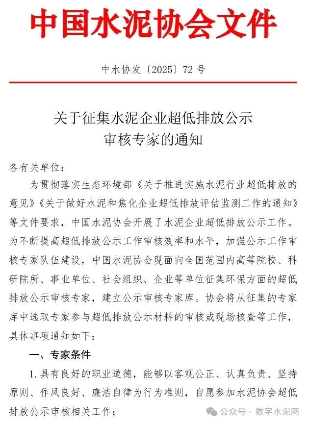 中国水泥协会:关于征集水泥企业超低排放公示审核专家的通知