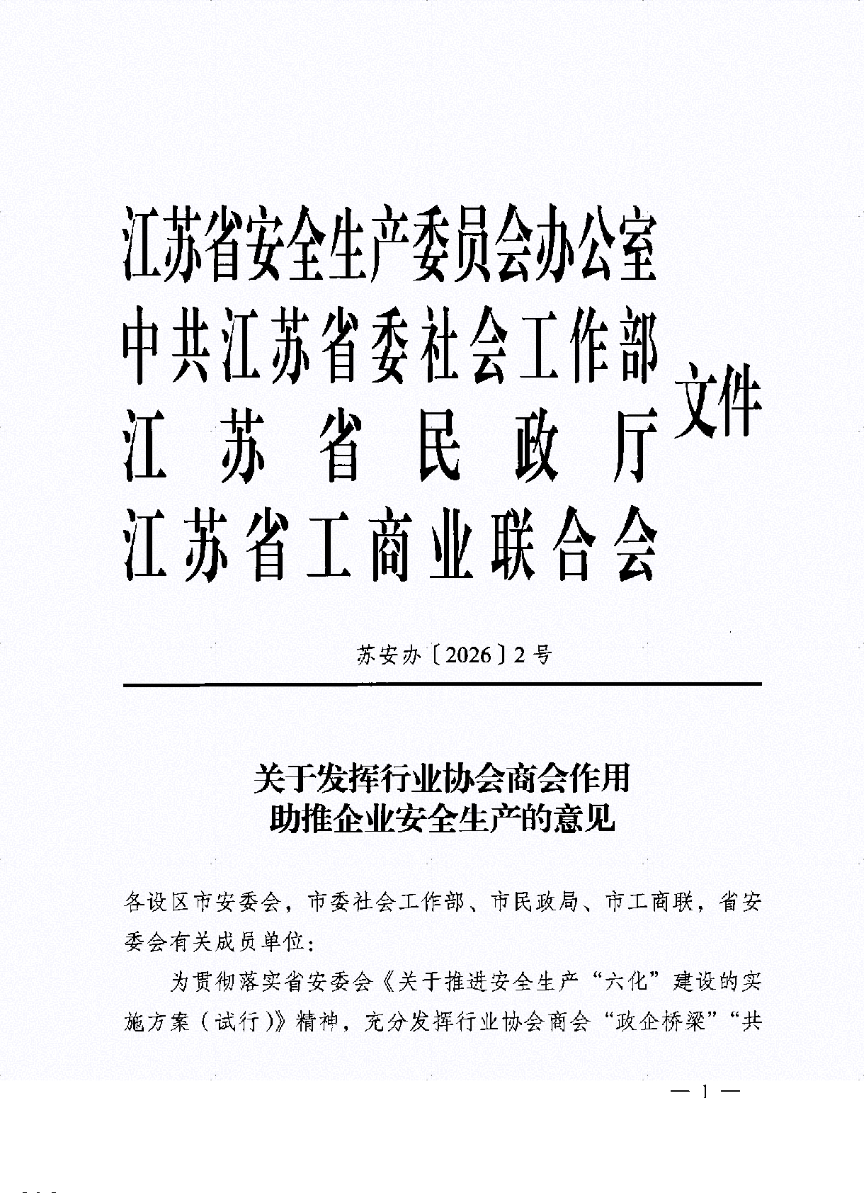 关于发挥协会商会作用助推企业安全生产的意见